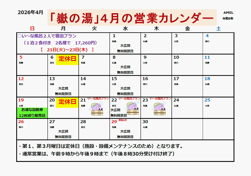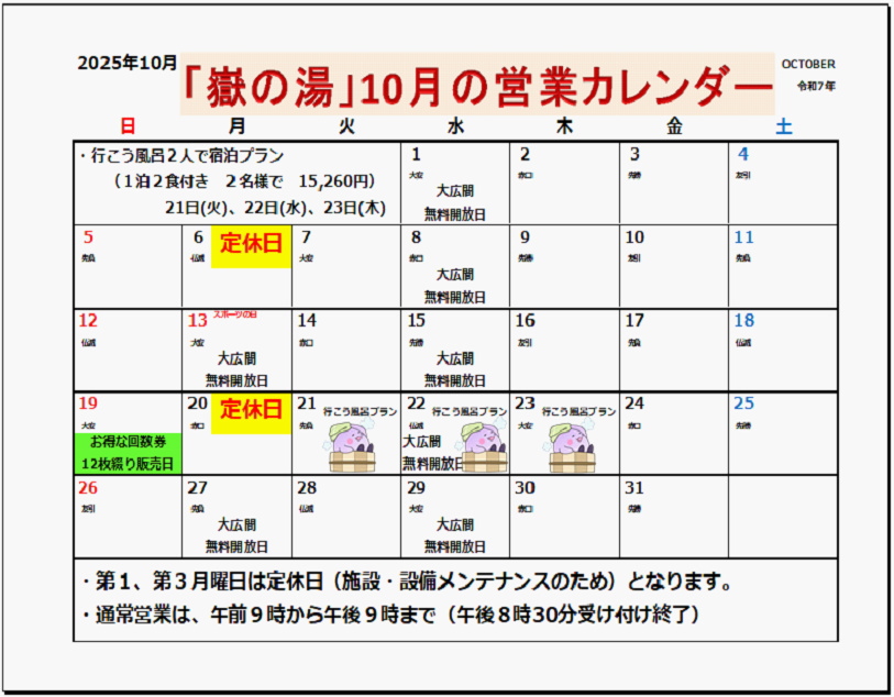 ■設備メンテナンスのため休業日、営業時間が変更になる場合がございます。